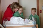 From what is sure to be thousands of pictures soon, here are some pictures that were taken this morning. Everything from the first time that we sat down together, to his first bath, to his first diaper change, to his first family visitors (including a picture of all of the Bersagel family cousins). Hello world!