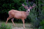 We went down to my folk’s house last night for dinner (hooray for Grandma’s sloppy-joe!) and encountered this male mule deer on their property.