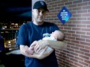 The game was fun and frustrating at the same time…the Rockies stormed to a 8-3 lead at the end of the fifth inning, which was fun…then gave up 5 runs in the sixth, which was frustrating. Right around the time that the Rockies laid a crapper, so did Ezra. He was in a sling (Hotsling that we used for the first time last night, and liked it. Perhaps a review coming in a few weeks) and it leaked out his diaper, through his shorts, onto his onesie, onto his shoes, and through the sling. Oh boy. We headed to a family restroom (if you have any influence over the temperature in a family restroom, please make sure it’s somewhere below 90) and changed everything. At that point we had been there for two hours and it was getting to be time to go…so we took the opportunity to leave while we were already out of our seats.