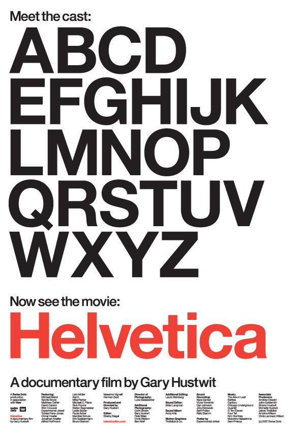 Congratulations, you guessed it! It is a movie about the typeface named Helvetica. By movie, I mean a documentary that goes over the history, use, importance, and transcendence of the typeface (don’t call it a font – the old school gets mad). It was 1 hour and 20 minutes of a relatively slow-paced story, and I would only recommend it to the graphic designers, journalists, and die-hard knowledge junkies out there. By the way, the name Helvetica comes from the latin word for Switzerland, which is where the typeface was invented. I suppose the most interesting part of the movie is how it shows all of the places that use Helvetica including: Microsoft, Sears, Target, American Airlines, Staples, Lufthansa, most of the street signs (stop, caution, etc), and the NYC subway system. It’s funny that due to the forced popularity of Times New Roman, we don’t often think of how used Helvetica is…but it’s everywhere. And I mean everywhere. Look at the title of the blog, and at the title’s of the posts. Yup: Helvetica.