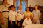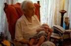 Yesterday, we gathered at Bestemor’s (reminder: Bestemor is Norwegian for Grandmother) farm in northern Iowa to celebrate her 96th birthday. We traveled from West Salem to Northwood in the morning (Ezra’s longest car drive to date: 2.5 hours) and arrived just in time for dinner – which is what they call the noon meal in these parts. We had a really good spread of food, as we always do at the farm. At the conclusion of the meal, we had some ice-cream cake to complete the culinary celebration.