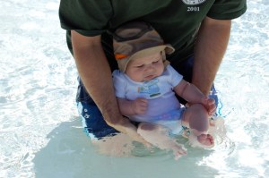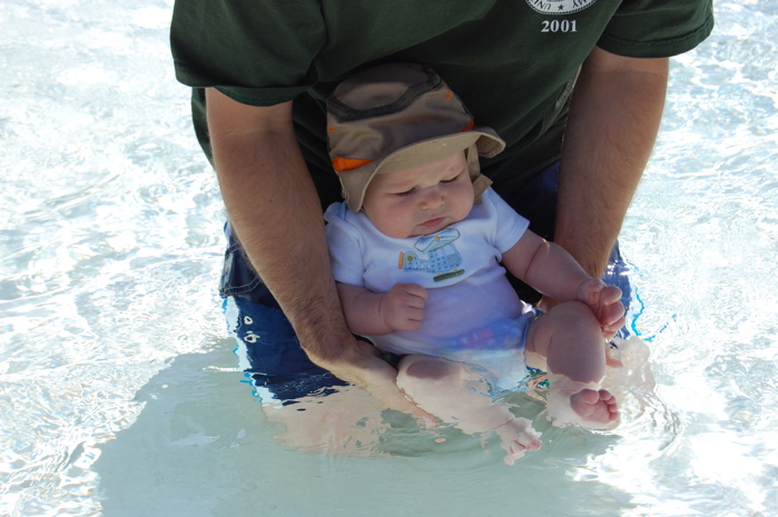 I got a kick out of this picture! You finally got to take him for his first pool experience. Happy swimming.