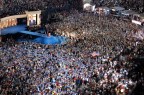 The first big speaker of the night was Al Gore, who gave a rousing speech that obviously focused on the need for environmental change from the White House. Not long after that Joe Biden made a surprise appearance, then Dick Durbin did the intro to Obama. There was a really well done video as a brief overview of Obama’s life…then he simply walked out on stage. No intro from the loudspeaker, no spotlight, no screaming intro speech…just walked out. Of course the already amped crowd lit up – they say that more than 84,000 people were there.