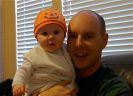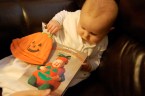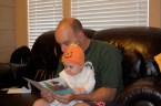 I headed home right after getting off of work and arrived to find a decorated house and an Ahna and an Ezra that were excited to start the celebration with me. Not long thereafter, we opened some cards and gifts…I say we because Ezra had a halloween gift to open (from Grandparents Bersagel; it was a book, and he loved reading it) and he then assisted me in opening my gifts. It was a ton of fun to see him reach out and grab the paper and pull it away from the gift…I know that all he wanted to do was eat it, but we can pretend that he was trying to get inside to see what the surprise was.