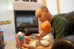 One of my requests for the day was to go swimming with Ezra and we managed to pull it off using the hot tub at my parent’s house. He really enjoyed swimming again, this time having fun floating in the water in a standing position, on his belly, and on his back. For the first time, I dunked Ezra’s head under the water…I was the creation of the reaction – by pulling him back up at a slight angle, it allowed some water to get in his nose…thus creating a moment of panic by Ezra. He was over it in just a minute or two, and I promised him that I would do it right next time.