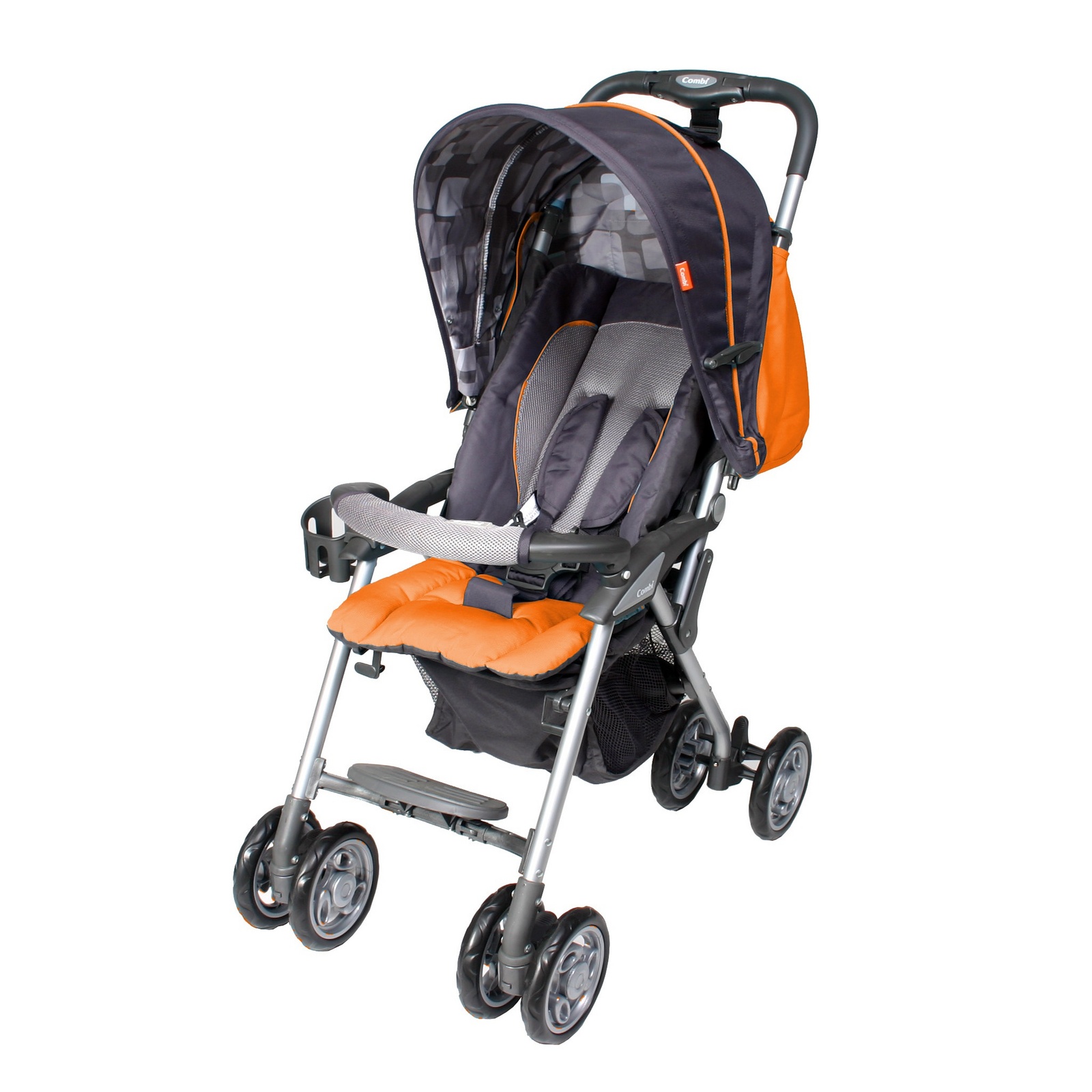 Since we can’t take it out of the car and clip it into a stroller base, we got a stroller as well. We went back and forth on this one for a while, but purchased the Combi Cosmo stroller for it’s size, weight, and portability (it’s actually designed for air travel constrictions: slightly narrower base, compacts like an umbrella stroller, and it is designed to be compliant with overhead storage requirements). We figured that those were good reasons for travel, but also for taking it around generally: lighter, smaller, and portability can’t be all bad.
