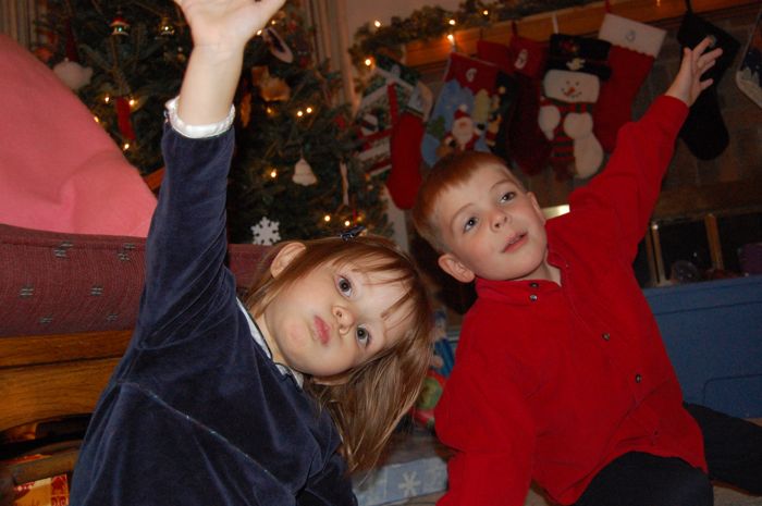 Last night we went to Christmas Eve services at Dave’s church. They were as good as ever, and the sermon held some special thoughts this season. Ezra fell asleep in KJ’s arms during the service, but awoke just as we began singing Silent Night with the sanctuary lit up by candlelight. After the service, we stepped outside to walk home, and were greeted with sub-zero temperatures, a cold wind, and lots of snow. As everyone got home, the kids went outside and spread around some Reindeer food….could it get any more Rockwell-ian?