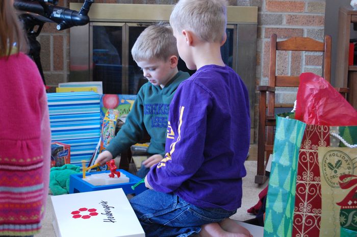 The weather continues to be wintery….it snowed more last night, probably another couple-3 inches, with more precip on the way today. We enjoyed a perfect day yesterday……we woke in the morning and opened the gifts that Santa left for everyone right away. Some folks then went over to church, and the rest of us lounged around the house for a while. Following services, we opened the gifts that we got for each other. All of us really enjoyed having the kids around, playing with each other, and sharing gifts with everyone (Johnathan and Isaac got a Wii Sport, which quickly turned into the family activity of the afternoon. Everyone got up and played something, including boxing, golf, tennis, and bowling. Okay, I admit….it’s pretty darn fun).