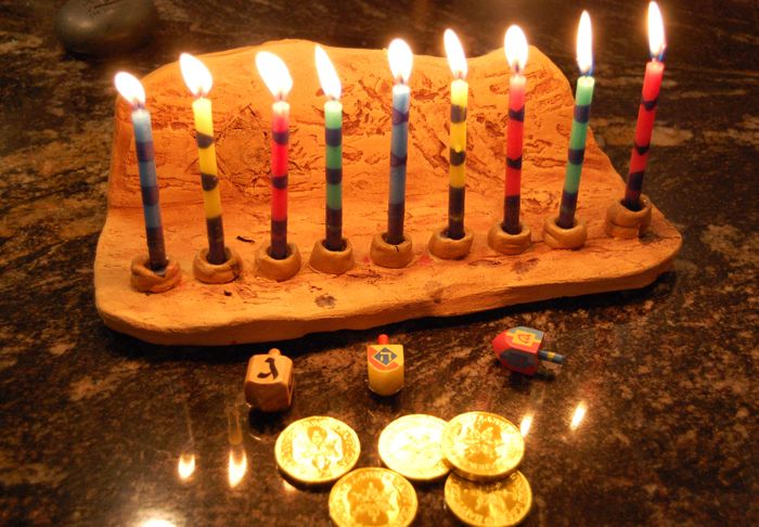 We had a good meal of latke and apple sauce (or ketchup for some of us), enjoyed opening some gifts, and lit the menorah.