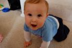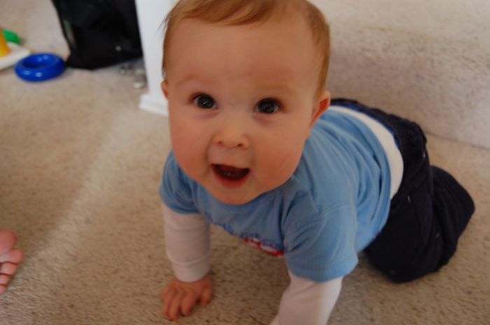 Happy 8 months today! And look at you standing up! WOW! Your wonderful smile shows us that you are so proud and so are we!! What a difference 5 weeks can make! At Christmas you were showing us that you were starting to crawl and now look at you! See you soon!! All our love, Grandpa and Grandma Bersagel