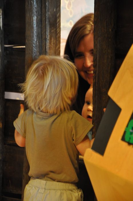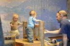 We had the opportunity to meet up with Abby, Teva, and Micah this morning at the Children’s Museum. This is Ezra and my second visit in just a few months, and Ahna’s first time there. The last time, Ezra was just learning how to crawl….wow. He really enjoyed Micah’s company and seemed into a lot more things this time….like cogs, boats, basketball, and fishing off of a pier. We put in one picture of Ezra crying (just after he fell on the pier…which at first I encouraged him to get back to playing, then later realized that he actually hit the railing hard enough to bruise his ear) only because you can see the love and care that his good friend Micah has for him with a big ‘feel better’ hug. 🙂