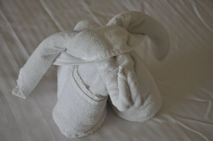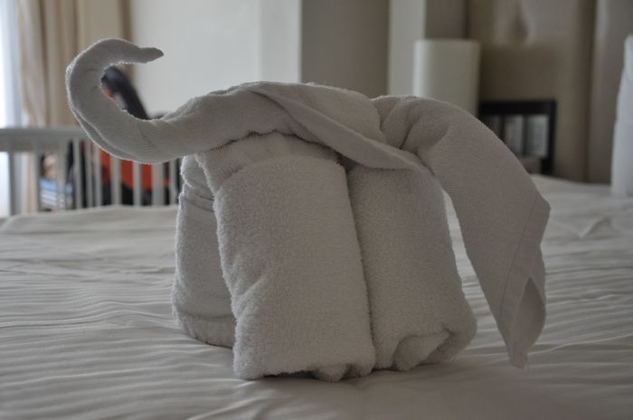 Pool, Beach, Pool. It was a good day. The lady who cleans our room even left Ezra a little towel-gift.