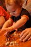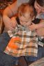 Ezra’s Great-Grandparents have been in town for the last month or so (since just before Dad’s surgery) and are planning on leaving over the weekend, which means that they won’t be here to celebrate Ezra’s 1st birthday at the party. So, we started the events early and held a nice little dinner tonight….balloons, the gifts from his Great-Grandparents, and a muffin with a candle instead of cake (trying to avoid the sugars for now). Ezra made the obligatory 1st birthday mess, and also got some really cute outfits that he will be sporting this summer and fall. Oh yea, and a book also – which is probably his favorite thing to do right now…read.