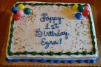 Ezra invited some of his closest friends over for the official 1 year birthday celebration on Sunday afternoon. The event was held at his grandparents house in Castle Rock, and the weather held out just fine for the whole party (even though there were 5 tornados that hit the ground in the Denver metro area, including one that prevented someone from coming to the party when it hit his building and the one next to his). Partygoers enjoyed beer, veggie burgers, and cake while Ezra enjoyed the partygoers. Thanks everyone for coming, and thanks everyone for all of your well wishes, thoughts, gifts, and calls.