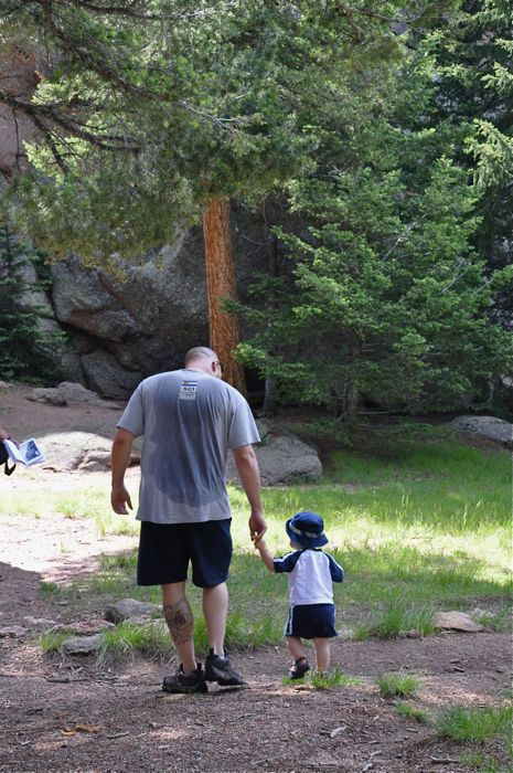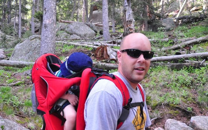 When we woke up we decided to go for a hike, and after some discussion, we settled on a trek to the fire lookout tower on the top of Devil’s Head mountain. It’s located just west of town (about 1 hour by car due to the slow driving on the roads) and is a landmark spot on the front range. We haven’t done the hike together in several years, although two summers ago I went up with Tanner. We put Ezra in the pack and started out….since it was during his morning nap period, Ezra actually fell asleep in the backpack – which surprised us because of the movement in the pack due to the elevation increase in the trail – but he slept for about the last 30 minutes of the climb up.