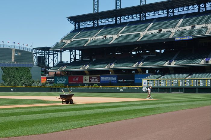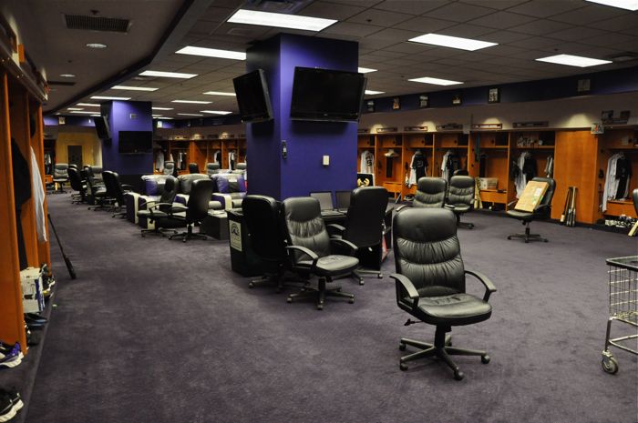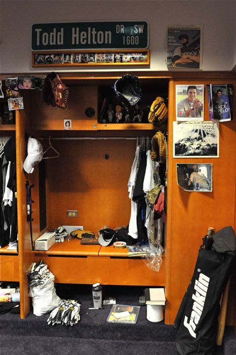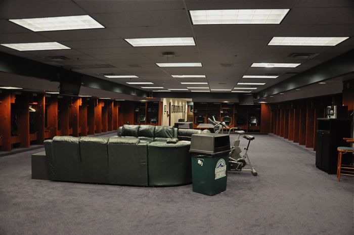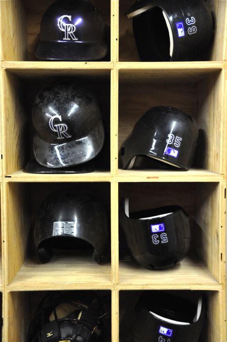 One of the fellas at work also works for the Colorado Rockies as a clubhouse hand. He has been doing this for 6 years, and prior to having to move to part time to accept the firefighter gig, he would even travel with the team. He set up a behind the scenes tour of Coors Field for the folks from B-Shift, and we headed up for a few hours of dreaming yesterday. We had the opportunity to see the visitors clubhouse, the Rockies’ clubhouse, the batting cages, the equipment room, the workout facility, the rehab area, the Rockies’ dugout, the bullpen, the fountains, etc, etc, etc. Even though they offer tours of Coors Field to the public, needless to say, what we got to see isn’t on the public tours – especially all of the home team stuff. It was freakin’ cool.
