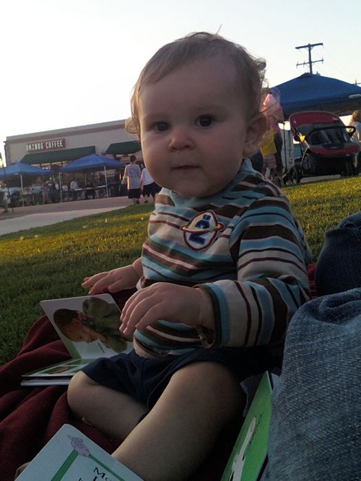 Today was a fun day hanging out in town: farmer’s market this morning (with dinner made from stuff bought at the market: wild mushroom and artichoke pasta), and then a Musicfest this evening. The weather was amazing – vests needed – and we made some good friends with the people that we sat next to, who also had a young child. We shared stories, books, and snacks for the kids while we listened to some good music.