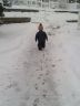 I had the fortune of being at work on Tuesday and Wednesday and responding to all sorts of traffic accidents caused by questionable driving in the weather. Ahna had the fortune of experiencing two consecutive snow days (which is even more of a rarity than the storm itself) and has been mostly cooped up in the house with Ezra. They did venture outside for a while yesterday afternoon, and everyone quickly realized that even an inch or three of snow is enough to trip up Ezra. He had a mostly good time exploring around, but the cold forced them in after only about 20 minutes.