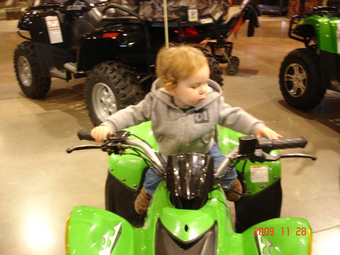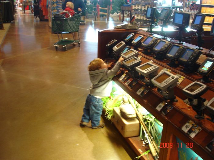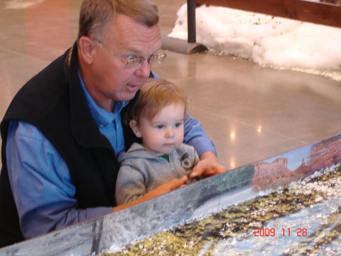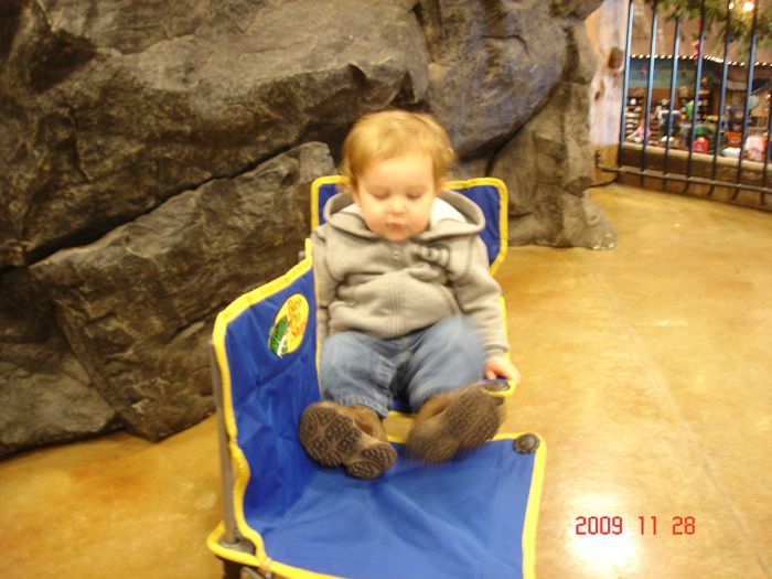 What a better place for grandparents to take a little hippie than to the Bass Pro Shop! šŸ™‚ Ezra’s Saba and Savta took him for the better part of the day, which included a trip to the north part of Denver and the hunting, fishing, camping and boating superstore. In reality, the place apparently has a lot of fun things to do including playing with R/C trucks, watching model trains, playing with slot cars, sitting on ATVs, enjoying getting outfitted for a backpacking trip, discovering what a fish-finder is and finding child size camping chairs. The best part? The nap that comes afterwards.