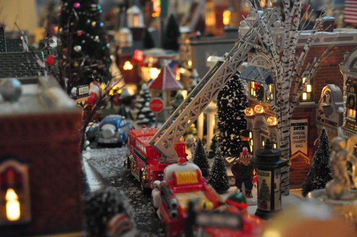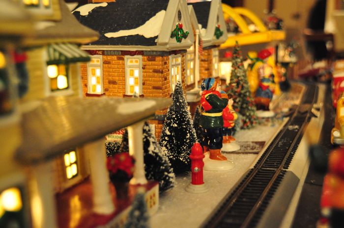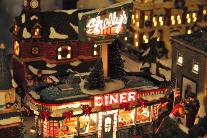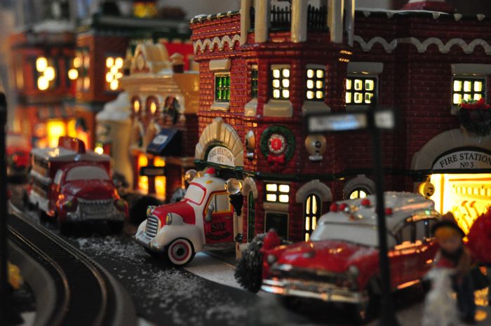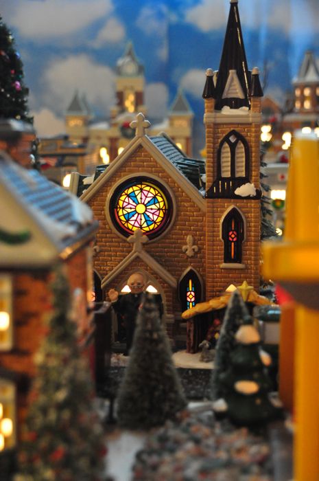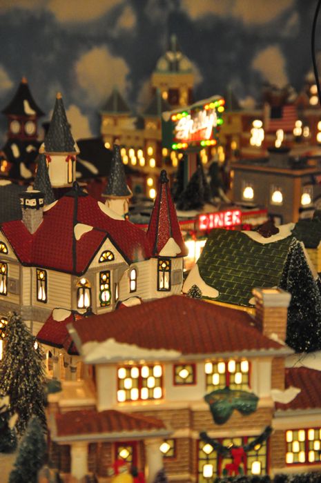 Anyway, I finally got to my Grandparent’s house in Jacksonville sometime after 9pm and sometime after 14 hours of travel. While Ezra was already asleep, I was able to hang out for a little while and appreciate the city that was constructed in their living room – all out of Department 56 pieces that my Grandmother collected over many years. They love to put it up (as evidenced by my Grandfather’s first words about it after I arrived: “This might be the last year”) and we love to see it….especially Ezra. He loved chasing the train back and forth on the tracks and did especially well with the delicacy of the display.