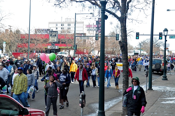 For the first time in what seems like an eternity, all three of us enjoyed a three-day MLK weekend together. It was filled with friends and goodtimes, accompanied closely with sickness (all three of us having some stage of a cold and/or fever). We also went up to Denver to participate in the annual MLK Marade (march and parade). It’s one of the largest in the US and this year the numbers are looking even up from other years….I have seen estimates in the 30,000 range. The marade got started a little later than we expected, so we were only able to participate for about a mile before peeling off for some lunch. We were able to build a meal in at Watercourse before heading home for the afternoon series of naps.