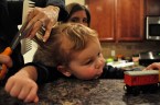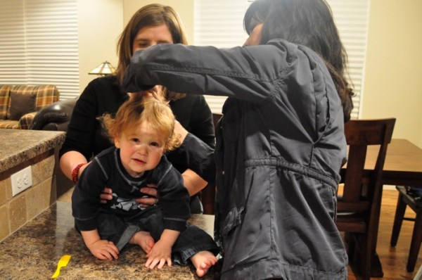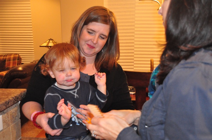 We had invited Cyrilla and Tanner over for some dinner, and decided to take advantage of them being here by putting Cyrilla to work. A little fussiness, but no crying…and a lot of moving around, as you will see in the photos.