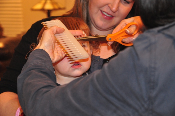 The goal was accomplished: loose a lot of the bulk and length without loosing the curls and the cuteness. See for yourself: