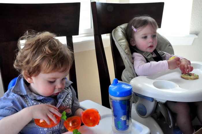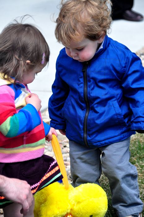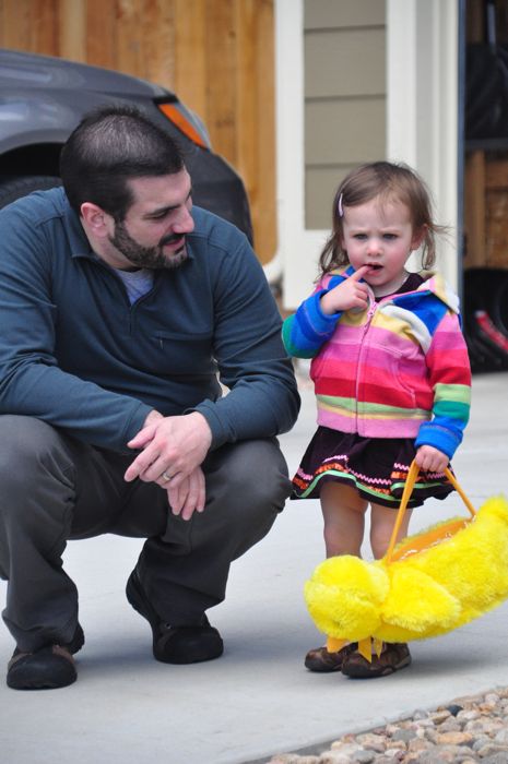 Following church and a too-short nap during which Ahna and I made lunch, my parent’s and friends Mark, Kendra, and Sydney came over for a meal. We enjoyed split-pea soup, a spinach and gruyere quiche, a broccoli and swiss quiche, and a strawberry and mandarin orange salad. The kids enjoyed each other’s company (as did the adults), and after lunch we did an egg hunt in the front yard. PS – this egg hunt was a ton more satisfying that the mass hunt done on Saturday at the park.