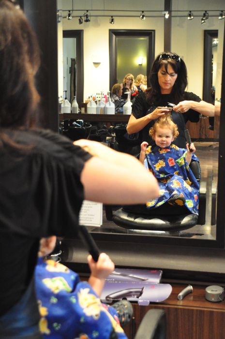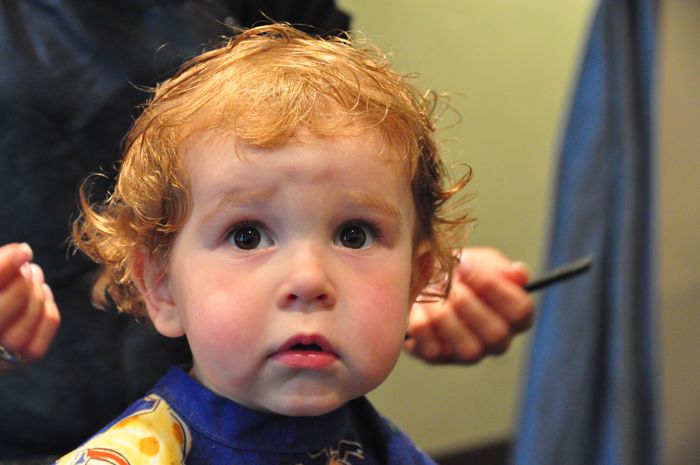 For this haircut – he needed one, and we wanted one prior to his second birthday – we went up to Cyrilla’s salon in Lone Tree. We hooked him up with another trim w/out loosing the curls and cut off quite a bit of hair. Since Ahna wasn’t there at the beginning of the cut (still finishing her day at school), I tried convincing Cyrilla that we were going to shave Ezra’s head. Thankfully, she didn’t bite.