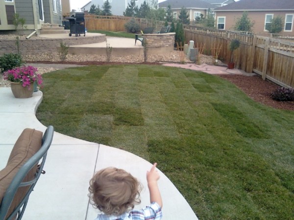 A few pictures from a couple of major projects that finished this past week. We finally got our backyard completed…..with a place for a future elevated garden. We also recently stumbled upon a free outdoor ‘house’ of sorts for Ezra, and it will soon be making it’s first appearance out back. They say that we will have to wait two weeks to get on the new sod – that’s gonna be tough. However, most importantly, does the completion of the backyard mean that there is a chance for the ski lift chair to finally be used?