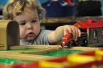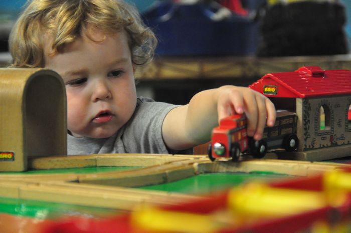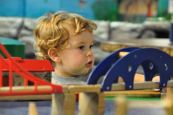These are the last photos from the Wisconsin/Iowa trip. On our last day in town, we went down to the LaCrosse Children’s Museum. It’s a great space for a town that size, and what was special about the place is that Ezra could participate in nearly every single aspect of the museum. At the one in Denver, Ezra can play with about 50% of the stuff there because it is designed for a large age audience. The one in LaCrosse is (in our opinion) designed for kids 5 and under; although older kids can have some fun there as well. They did also have a train set to beat any train set that we have seen yet – one that you can crawl under the table and pop up in 5 different spots to play with the trains. Ezra thought it was pretty cool.