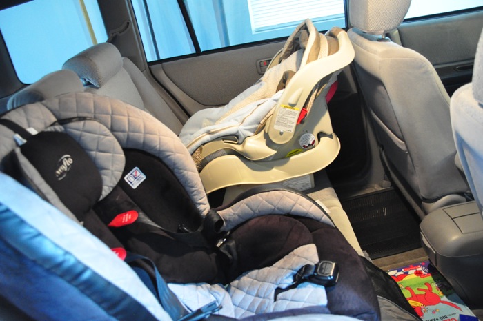 So, today’s baby preparation event was the installation of the infant seat in the Highlander (the Subaru is at work with Ahna so I will get it’s base installed later tonight). Say goodbye to any backseat easy storage for us and say hello to a new neighbor for Ezra! It certainly looks a little strange – about as much as it did when we installed it for Ezra. I suppose that each of these prep events will ease our minds a little as we try to get everything ready; but this one at least allows us to get the baby home from the hospital….a welcome thing.