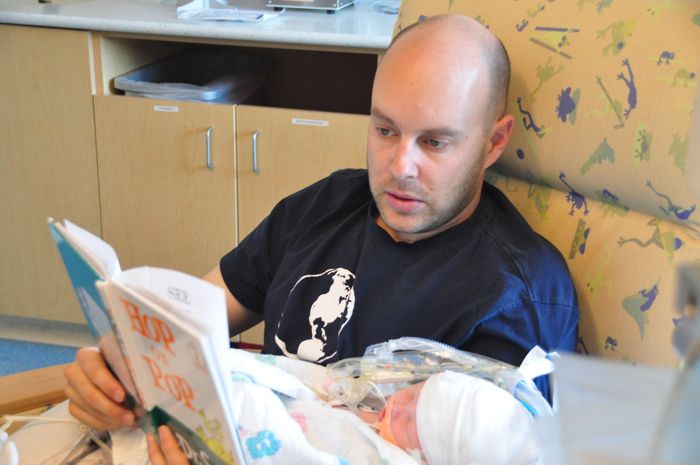 Medically speaking, Liam continues to have seizures – which at the exact moment might/might not be controlled. He has gone down just a hair on his blood pressure meds, but otherwise things aren’t all that different from the last update. We continue to have chances to hold him – which takes three nurses to get him in and out of bed. The staff here is simply amazing and are willing to bend over backwards at a moments notice to allow it to happen.