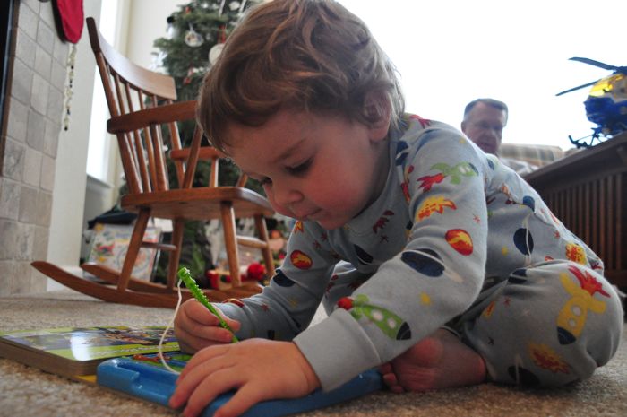 Ahna and I came back to the hospital after Ezra was sleeping and spent the night here. We woke super early and went back home so we could be there when Ezra woke up…and to see what Santa brought. Ezra had left a note along with cookies and milk for Santa, and sure enough, all that was left were some crumbs and a return note. We enjoyed opening gifts this morning before we again returned to the hospital.