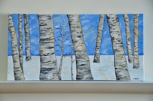 So as we got closer to Liam’s due date, we reached out to her and asked her to do another painting. The art that she has done specifically with our family in mind has been centered on a Colorado staple: the aspen tree. For our wedding, the drawing was of an aspen tree with our initials carved into it. For Ezra’s shower, it was two aspen trees with a sapling growing between them. And now, in the best piece yet, there are the three trees from before (Ezra’s just a little older) and a new one for Liam. Perhaps my favorite part of the painting is the rest of the grove that surrounds the four trees….our extended family and friends. I don’t know how to describe the amount of time, effort, and thought that goes into a painting like this one; other than to use the word ‘love.’ Thank you, Erin!