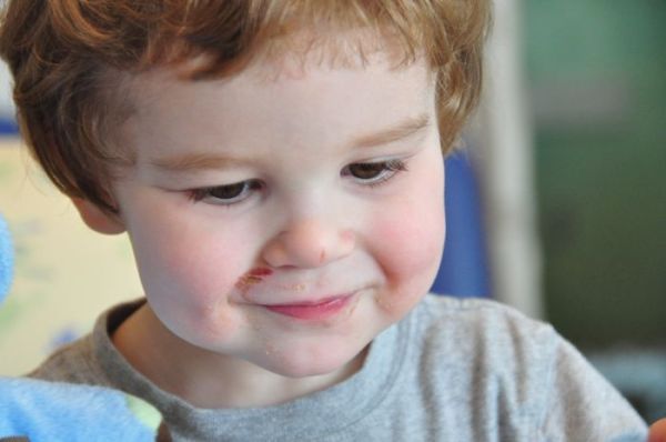 We have been graced with a few visits from Ezra in the past two days, and today we were able to see in person for the first time his newest ‘face meets something it’s not supposed to’ marking. He and Nora were quietly and peacefully sitting in a chair down at my parent’s house when they tipped it over and fell into a cabinet. Nora walked away with no outward expression of the incident, while Ezra received a temporary tattoo of a scrape on his upper lip.
