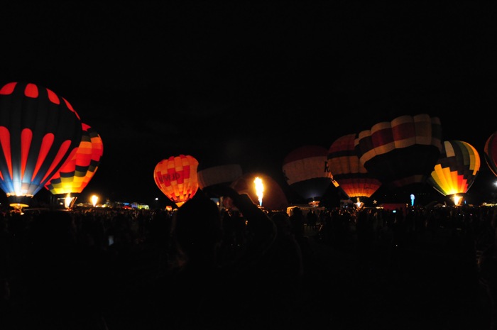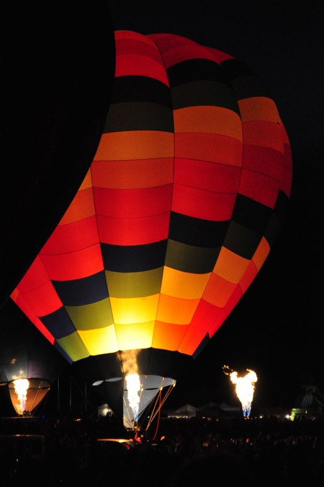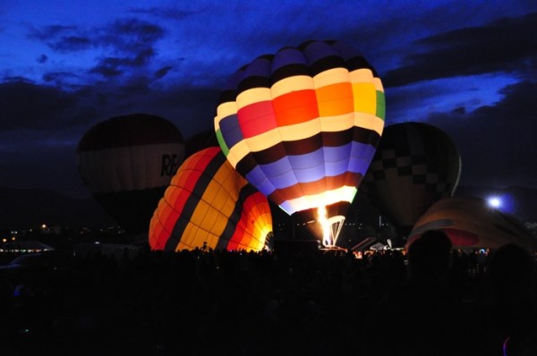 Each Labor Day weekend, Colorado Springs hosts the Colorado Balloon Festival, which is an amazing event to bring your kids to – and it provides something cool for you to look at as well. This year we again met up with some good friends and went down, except instead of going in the morning for a launch (click here for the photos and story of the first time – wow, it’s crazy to look at pictures of Ezra at that age), we went in the evening for a nighttime display. While they don’t actually launch the balloons, they put on quite a display as they fill them for everyone to see. One of the things that makes this such a huge draw (tens of thousands of people have been there each time we have gone) is that you can walk up to and all around the balloons as they are getting unrolled, set-up, and filled. You also have the opportunity to talk with the balloonists and find out more about the process or their balloon in particular. If you are ever out here during that time, make it a point to go there – it won’t let you down.