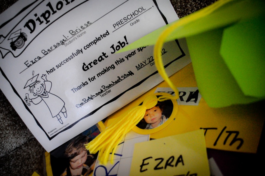 Ezra made some awesome friends in his class, really enjoyed his teachers, brought home lots and lots of fun things to share with us, and most importantly – loved going to school. His year wrapped up with a nice little graduation-style ceremony and a party (captured very nicely by Ahna since I had to work). Next year will feature a pre-school program that he will attend three days a week, although it won’t be at the same school (but it will be nearby).