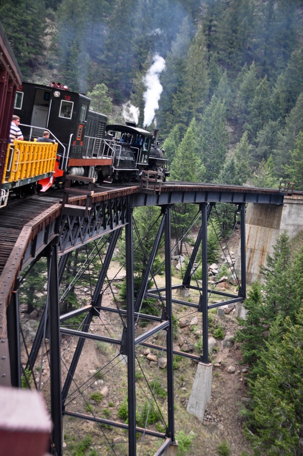We headed up to the mountains and into Georgetown to ride the railroad. They have a train there – The Georgetown Loop Railroad – that runs on an old mining track, which gives you a steam powered 1.5 hour ride through the mountains and up from Georgetown to Silver Plume. We were able to escape the summer of the front range, and enjoy some of the coolness provided by the mountains, while riding in an open-air car both directions (should you decide to go sometime, go as early as possible, as the train was full of school/camp kids on the return trip). It took a little while for Ezra to warm up to the motion, to the noise, and to the experience; but once he did, he had a blast.