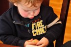 What do those two things have in common? Other than they strangely sound good together, little to nothing. However, the combination of take-out Japanese food and left-over flowers from Easter brings us to this posting. Ezra had his first experience with chop sticks, and while there were moments of hopeful brilliance, he mostly just poked at his food. We feel that there is much more to come in the Asian foods area…
