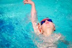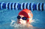 The team has been practicing for two weeks, and those practices finally culminated in the first of five scheduled meets. This season, Ezra swims in the 6 and Under age group, and is officially eligible for only three events: 25m free, 25m back, and 25m breast. We signed him up for the free and back races, and threw him to the racing wolves to see what would happen.