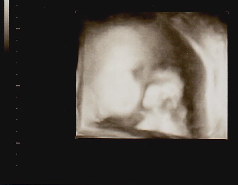 The picture from the ultrasound is supposedly of her mouthing her arm. The audio of the heartbeat was remixed using Ezra’s directorial guidance in post-production.