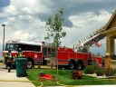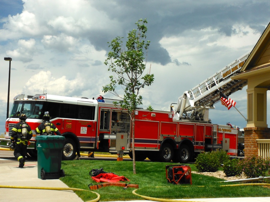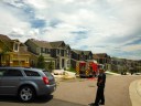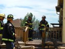 I immediately looked over at my driver, and told him to drive very, very fast. We could see a column of smoke raising from the neighborhood as we came down the hill from our station. I told him again (and probably did five more times during the response) to make the truck go faster….thankfully, he is more seasoned than to listen to the requests of a moderately emotion filled officer, and he stayed the course of a fast-but-safe response. The first arriving Chief got on the scene, and gave a corrected address – which was not our house – and told us that it was a deck fire spreading to the house. Just prior to our arrival, another engine got on the scene, stretched a line, and knocked the bulk of the fire out. We got there and did a search, checked for extension, and assisted in the rather extensive overhaul of a trex deck. It was super strange to round the corner in the truck and to see Ahna and Ezra, along with the rest of the neighbors, greeting our arrival on the sidewalks.